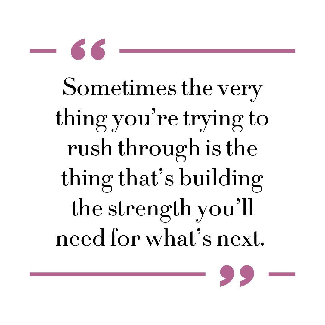 Sometimes the very thing we’re trying to rush through is the thing that’s building the strength we’ll need for what’s next.